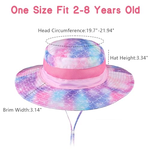 • 📐【Size & Adjustable】Kids beach hat head circumference is 19.7"-21.94", suitable for girls age 2-8. The back of the hat has an adjustable head circumference strap, which can be adjusted in size if it is too loose or too tight. The durable fabric and exquisite craftsmanship hat can grow up with your child.