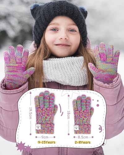 Kids Toddler Winter Warm Fleece Lined Gloves for Girls Boys, Thick Thermal Cute Knit Gloves for Cold Weather 7