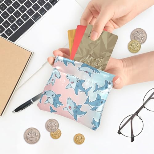 Cartoon Hammerhead Sharks Coin Purse Leather Pouch Change Purse, Squeeze Coin Pouch for Cards, Keys & Lipsticks, Unisex 7