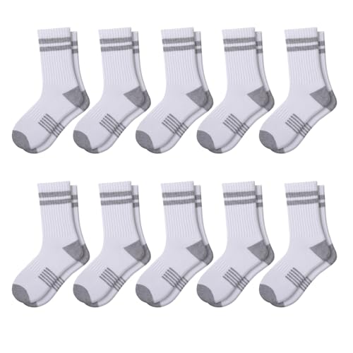 More information about Comfoex 10 Pairs Boys Crew Long Athletic Socks for 4-6 6-8 8-10 Years Old Kids Calf Sports Half Cushioned