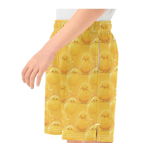 Boys Athletic Shorts with Pockets Yellow Chick Drawn Running Basketball Shorts for Youth Elastic Waist Size 7-8 6