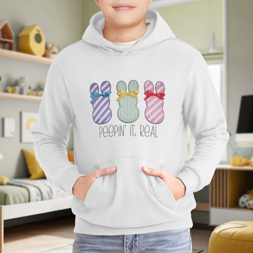 HOT ! Kids Retro Easter Bunny Happy Easter Peepin' It Real Funny Boys Girls Lightweight Kangaroo Pocket Hoodies