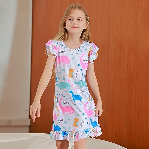 • Cute dinosaur Nightdress-Crew Neck, Short Flutter Sleeves, Cute dinosaur Patterns, dinosaur pajamas more vibrant and bright, kids princess pajamas easy to put on and take off.