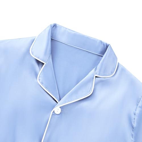 Weixinbuy Girls Pajamas Set Button Down Short Sleeve Pjs Satin Pajamas Sleepwear Lounge Set 3Pcs Pjs for Teen Kids Girls Boys 5