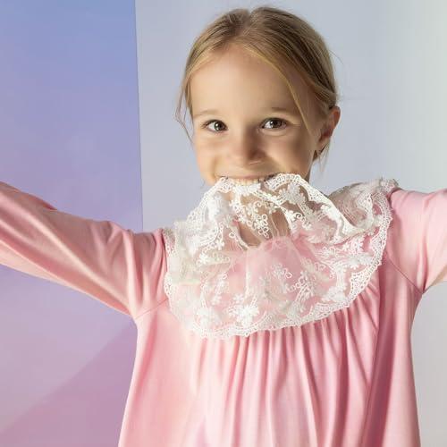 • 👸 Cute Design for Girls Loose lace Nightgown -- delicate layered lace crew neckline with elegant silky bowknot, flutter long sleeve and pretty ruffle, what every little girl deserves!