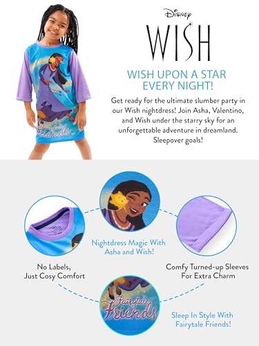 • Official Disney Merchandise: This purple Wish nightgown combines the enchantment of Disney with the comfort of a nightie. Our exclusive Disney nightgown for girls features Asha from the movie Wish, with her star companion; it's a ticket to a world of dreams and wishes. Make bedtime a magical experience with this Disney princess nightgown.