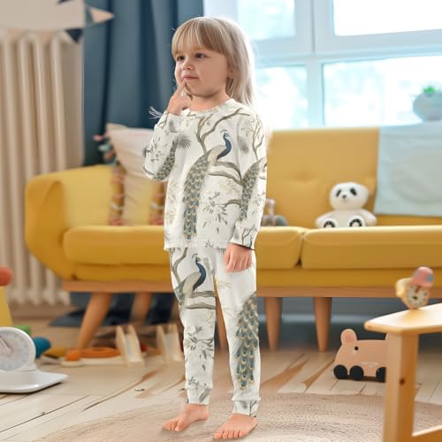 Fustylead Vintage Garden Peacock Palm Floral Pajamas Cotton Sleepover PJ Set Long Sleeve Lounge Wear 1