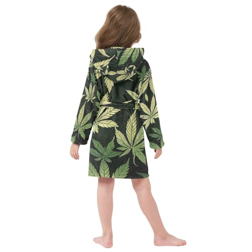 Green Leaves Black Vintage Hooded Pajama Robe For Girls 4