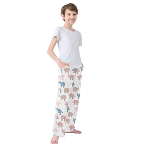 HOT ! Colorful Cute Elephant Pajama Pants Lounge Sleep Pants Elastic Waist Long Pajama Bottoms with Pockets for 6-14 Years