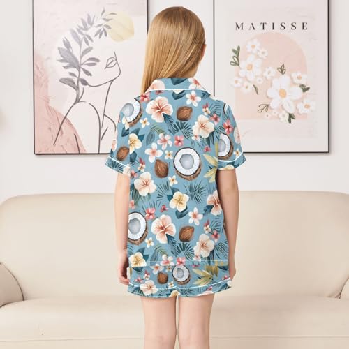 Tropical Coconut Plumeria Flowers Pajamas Set Summer Button Down Sleepwear Pjs Sets Comfy Loungewear 6