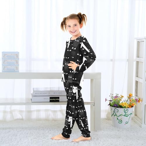 Cats in Black and White Soft Pajama Set for All Seasons,Breathable Pjs Long Sleeve Sleepwear,Comfy Loungewear 2 Piece Underwear Set 5T 7