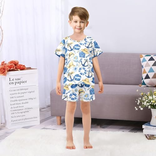 Anchor Hat Swimming Ring Pajama Set, Short Sleeve Cotton Sleepwear Nightwear 6