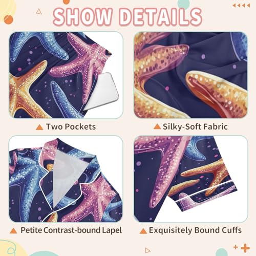 Satin Pajama Sets Short Sleeve Colorful Starfish Pattern Button Down Silky Nightwear 2 Piece PJS 5-14Y 1