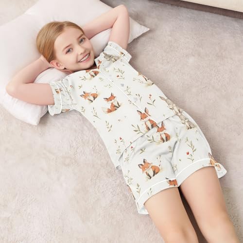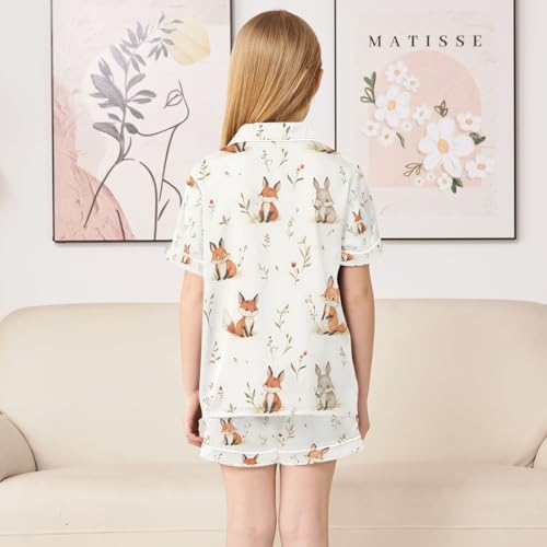 senya Fox Rabbit Cute A Satin Summer Pajama Sets Silk Short Sleeve Button Down Sleepwear 1