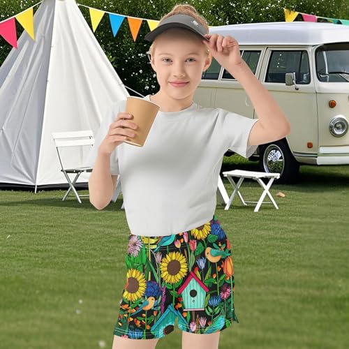 Colorful Vibrant Garden Girls Shorts Floral Casual Athletic Summer Pajama Activewear Comfy Youth Clothes, X-Small 1