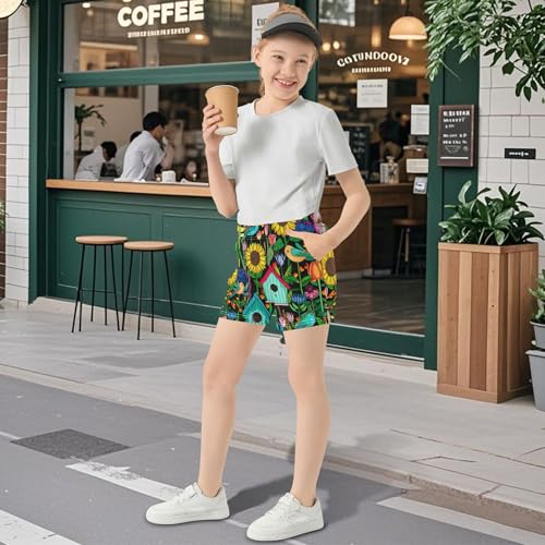 Colorful Vibrant Garden Girls Shorts Floral Casual Athletic Summer Pajama Activewear Comfy Youth Clothes, X-Small 5