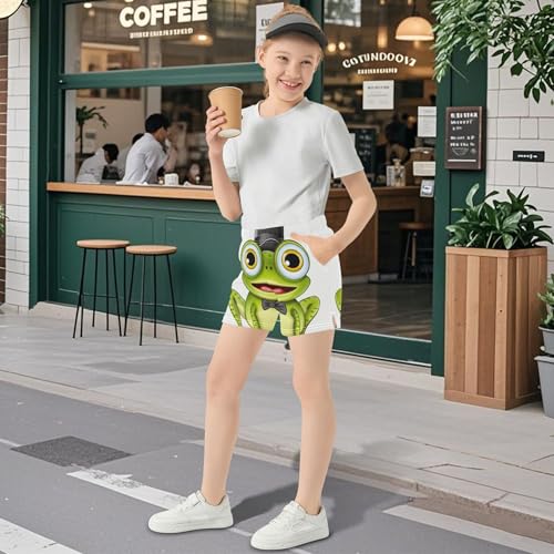 Cute Frog Gentleman Green Girls Athletic Shorts Youth Summer Comfy Activewear Kids Pajama Sleep Shorts, X-Small 4