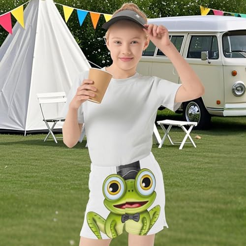 Cute Frog Gentleman Green Girls Athletic Shorts Youth Summer Comfy Activewear Kids Pajama Sleep Shorts, X-Small 6