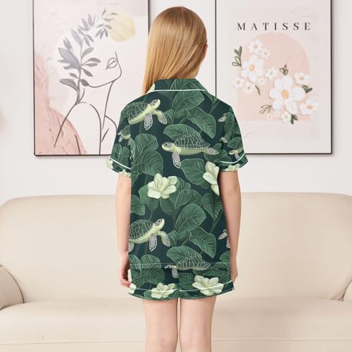 HOT ! senya Turtle in The Pond Lotus Satin Summer Pajama Sets Silk Short Sleeve Button Down Sleepwear