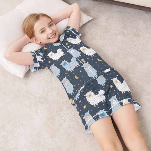 senya Cute Alpaca Moon 1 Satin Summer Pajama Sets Silk Short Sleeve Button Down Sleepwear 3