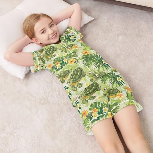 senya Tropical Leaves Turtles Satin Summer Pajama Sets Silk Short Sleeve Button Down Sleepwear 6