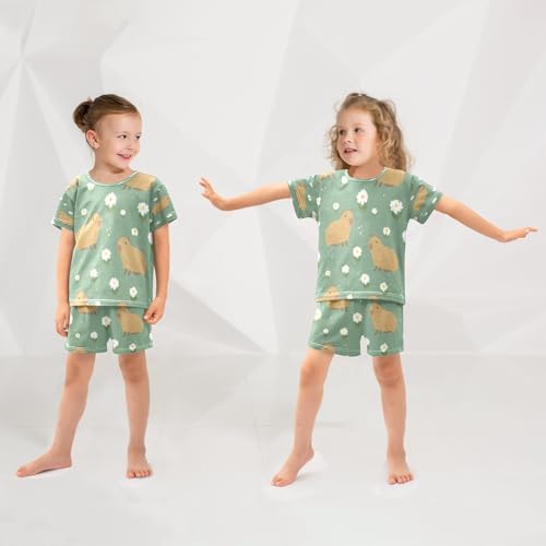 Capybara Daisy Pattern Kids Pjs Set Boys Girls Summer Short-Sleeve Sleepwear Pajamas 2PCS 4