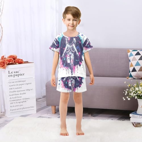 ALAZA Astronaut Space Watercolor Pajamas Set Short Sleeve Cotton Sleepwear Summer Pjs 2 Piece 5-14Y 5