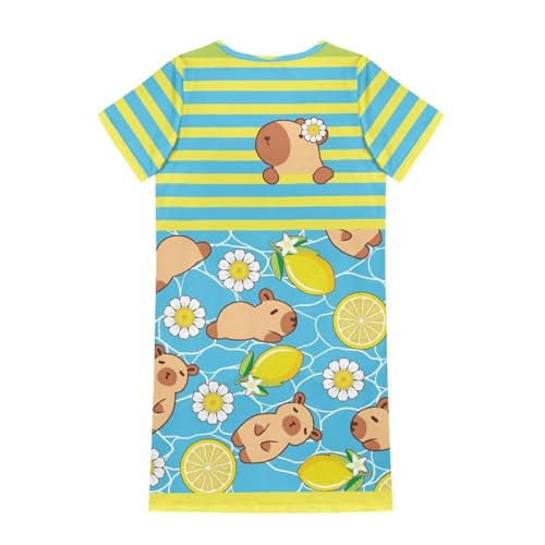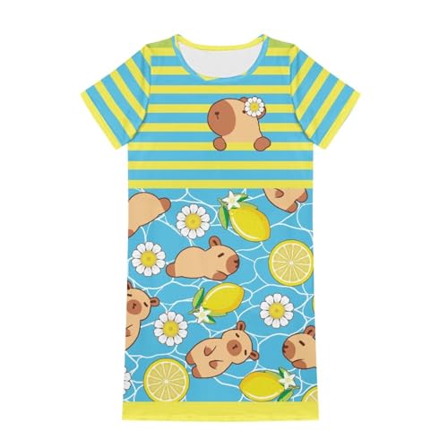 Little Girls Capybara Dress Summer Cute Clothes Home Play Skater Midi T-Shirt Dress for Kids 3-4T Loose Fit 5