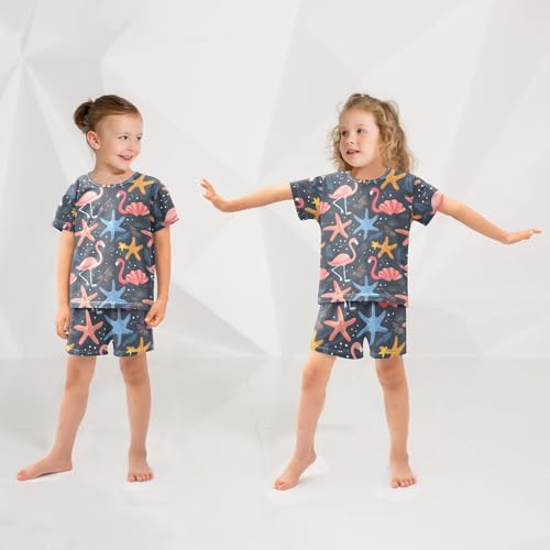 ALAZA Starfish Seashell Flamingo Blue Pajamas Short Sleeve 2 Piece Sleepwear Top and Bottom Pajama Set Unisex 2
