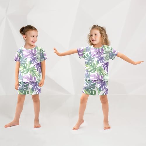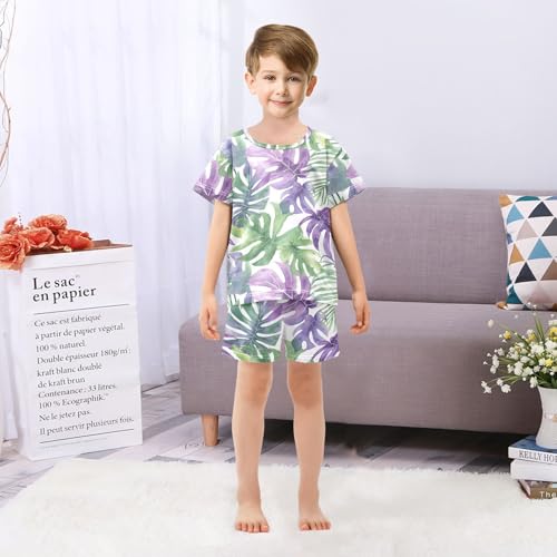 ALAZA Green Palm Leaves Pajamas Short Sleeve 2 Piece Sleepwear Top and Bottom Pajama Set Unisex 2