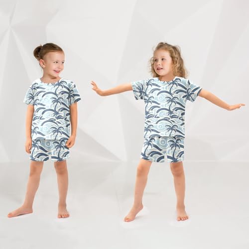 ALAZA Palm Tree Sea Wave Pajamas Short Sleeve 2 Piece Sleepwear Top and Bottom Pajama Set Unisex 2