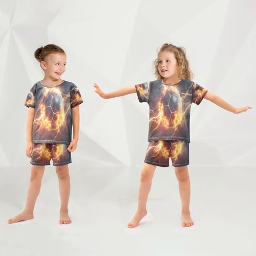 senya Short Sleeve Pajamas Sets Summer Cotton Sleepwear Soccer Ball Lighting Fire 1
