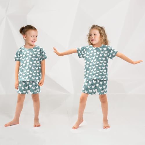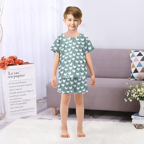 ALAZA White Chickens Leaves Pajama Set Short Sleeve Sleepwear Soft Lounge Nightwear 2