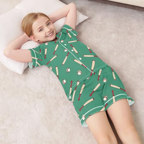 ALAZA Baseball Stylish Green Pajamas Satin Pajama Set Short Sleeve Button Down Sleepwear 1