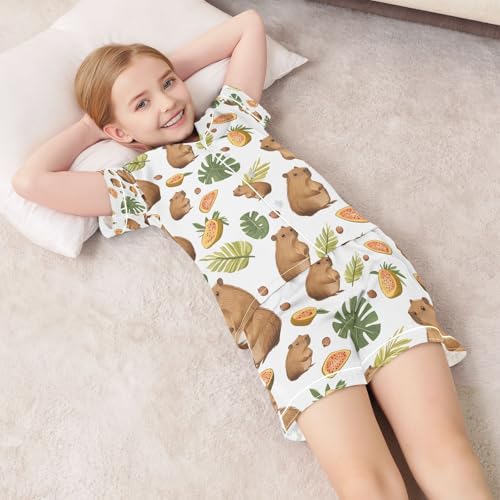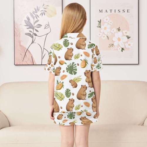senya Cute Capybara Tropical Fruits 1 Satin Summer Pajama Sets Silk Short Sleeve Button Down Sleepwear 7