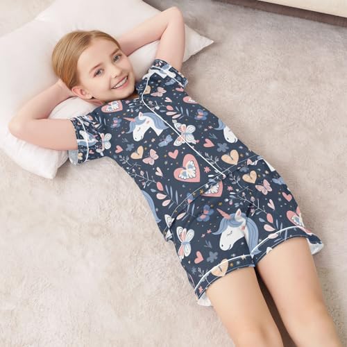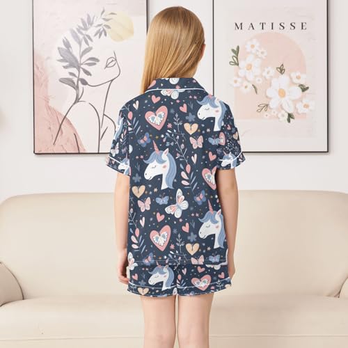 senya Unicorn Heads Hearts D Satin Summer Pajama Sets Silk Short Sleeve Button Down Sleepwear 4
