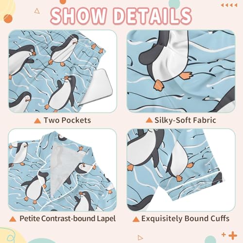 More information about ALAZA Cartoon Penguin Dancing Satin Pajamas Set Short Sleeve Button Down Sleepwear Summer Pjs 2 Piece