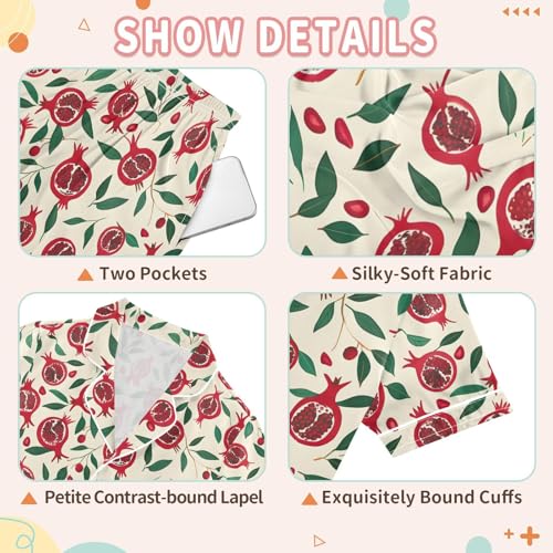 ALAZA Pomegranate Leaf Fruit Satin Pajamas Set Short Sleeve Button Down Sleepwear Summer Pjs 2 Piece 2