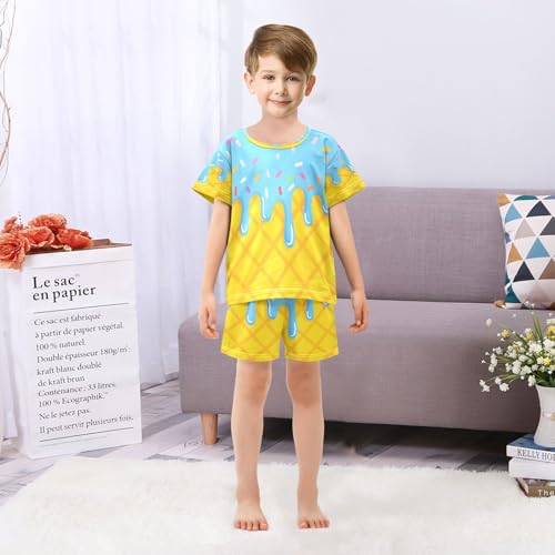 ALAZA Yellow Blue Ice Cream Pajamas Set Short Sleeve Cotton Sleepwear Summer Pjs 2 Piece 5-14Y 4