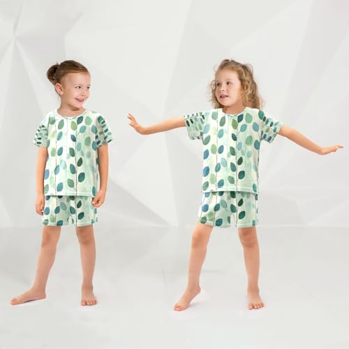 senya Short Sleeve Pajamas Sets Summer Cotton Sleepwear Blue Green Leaves 1