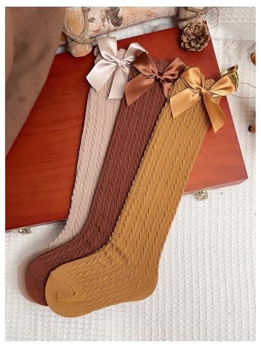 OYOANGLE Girl's 3 Pairs Knee High Socks Bow Cute Over Calf Kids Over knee Stockings 3