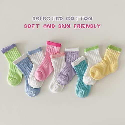 Kids Socks Ribbed Cuffs Crew Socks Solid Mid-Calf Mesh Color Block Socks for kids 3 Pairs 7