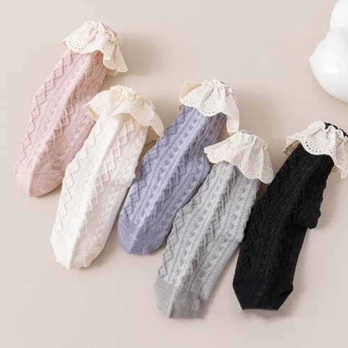 5 Pairs Kid Girls Frilly Princess Socks Casual Ruffled Comfy Ankle Crew Socks Cute Lightweight Dress Socks 5