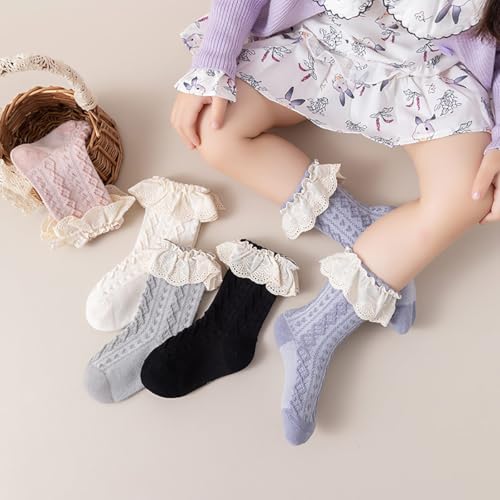 • Awesome Detail Design: Casual comfy frilly dress socks has the crew design will keep the top of your little one's ankle warm, the elastic ribbed cuffs prevent the socks from falling off and won't leave marks on the skin, easy for on and off.