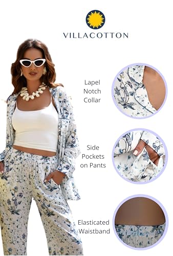 • THOUGHTFUL DESIGN: Every detail is crafted for your ease and perfect fit — delicate piping, lapel notch collar, full button closure, patch pocket on shirt, and side pockets on pants with elastic waistband.