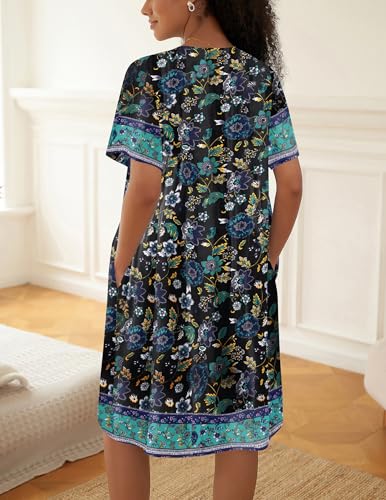Ekouaer House Dress for Women Button Down Nightgown Short Sleeve Housecoat with pockets S-4XL 5