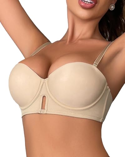 Push up Strapless Bra Comfortable Padded Demi Underwire Convertible Straps T-Shirt Multiway 4