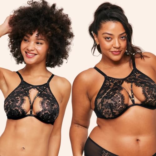 HOT ! Adore Me Emmeline Unlined Underwire Bra - 30A-38DD High-Neck Lace Bra for Women with Stud Detail & Adjustable Straps