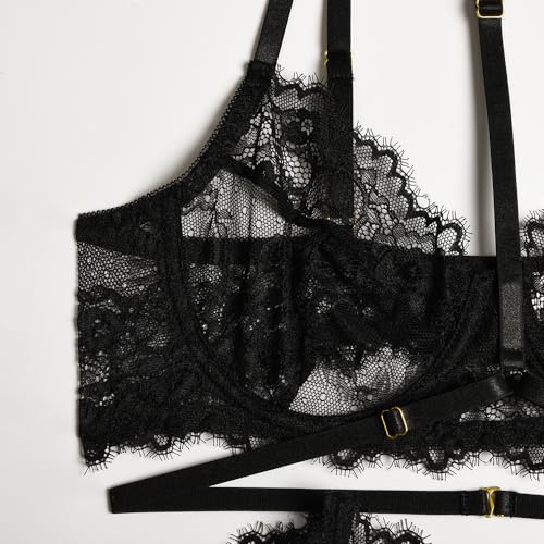 Elegant Lace Lingerie Set with Adjustable Straps and Garter Belt - Sheer Bra and Panty Ensemble for Women 3
