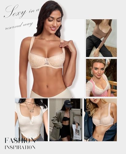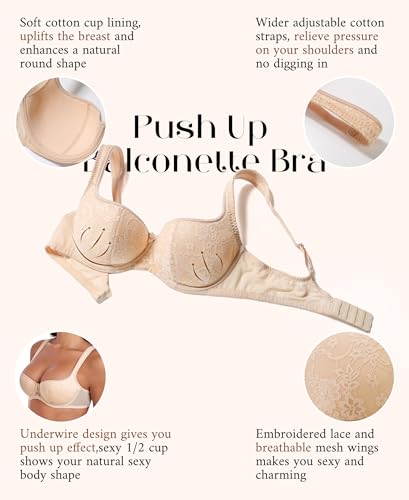 More information about DotVol Women's Lightly Padded Floral Lace Demi Wide Straps Underwire Balconette Bra